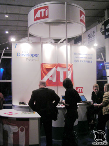 Многолетние соперники на рынке графических чипов оказались соседями на IDF - стенды ATI и NVIDIA разделяла лишь тонкая перегородка.