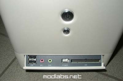 First unigue feature is it's multi-port panel. What do you imagine when it's said "multi panel"? Aye, USB and FireWire and audio jacks... And what about IDE? GMC is very proud of their invention - they put standart IDE-connector and molex plug just in to this multipanel! So from now you don't need special external CD-ROM or rack for your "portable" hdd. Really cool feature. It's strange that no one else used this simple idea. Btw it's interesting idea for modders to make such thing DIY. Except IDE connector on Neo Classic's multipanel you'll find two USB 2.0 ports plus MIC and EAR jacks.