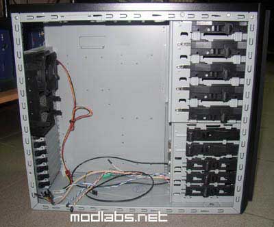 Although T50 is a typical middle-tower by its dimensions, it is equipped with five (!) 5.25" drive bays plus two 3.5" bays. Even Chiftec's DX series have four slots, and this case is smaller. That's truly a plenty of space for all your drives over there! Case is very well planned so inside there is room for dual cpu motherboard. Actually, T50 is positioned by manufacturer as a chassis for small server, but hardware enthusiasts will find it suitable for their needs.