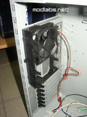 Cooling system of T50 isn't something original. One place for 80mm cooler in the front, two cages at the rear panel with one pre-installed fan and a grill at the side panel. With this grill T50 matches the latest Intel's requirements for 3GHz+ CPU. Explaination: I've seen some Intel documents with specifications of new case requirements. They propose to use side blowhole with a pipe, delivering cool air directly to the cpu cooler (similar to "CPU Tunnel Badong" construction). Sorry guys, no pics here:( maybe later. The second requirement states that temperature inside the case have not to exceed +37C. So, one more mod goes stock?