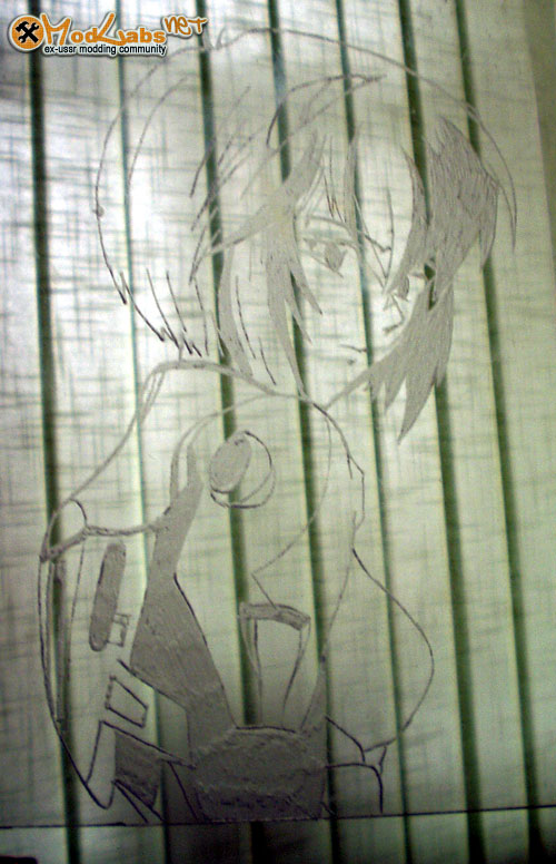 На левой фотке вы видите окно в моём пушистом корпусе Rufortina, а на правой одну из моих первых тренировочных гравировок на фоне жалюзей. С тех пор я сделал ещё несколько гравировок, которые я надеюсь смогу вам показать в ближайшее время. Также я планирую дополнить статью фотографиями, но на мой взгляд всё и в таком варианте уже достаточно ясно. Успешной вам гравировки!