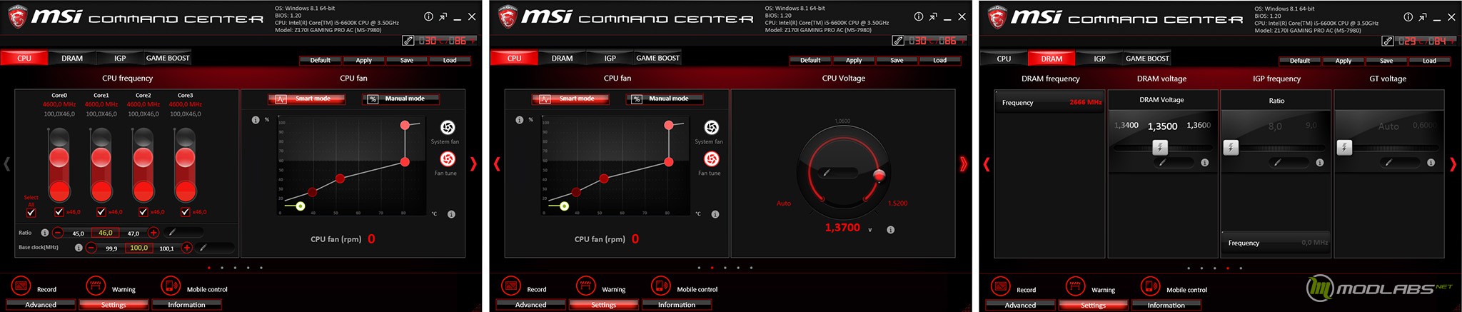 Сама утилита имеет очень большой и масштабный интерфейс. Лично мне не хватило режима «простых крутилок» по аналогии с древним SetFSB. Так, для увеличения напряжения нужно на закладке CPU перелистнуть окно вправо – не совсем интуитивно.