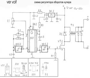 Дроссель T1 и конденсаторы C4 - C7: выходные фильтры канала питания вентилятора.