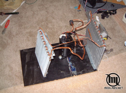 Затем заизолировал трубки возле компрессора и установил вентилятор для охлаждения конденсера.