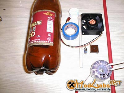 - бутылка пластиковая 0.5-2.0 литра (зависит от типа используемого вентилятора) + крышка от нее