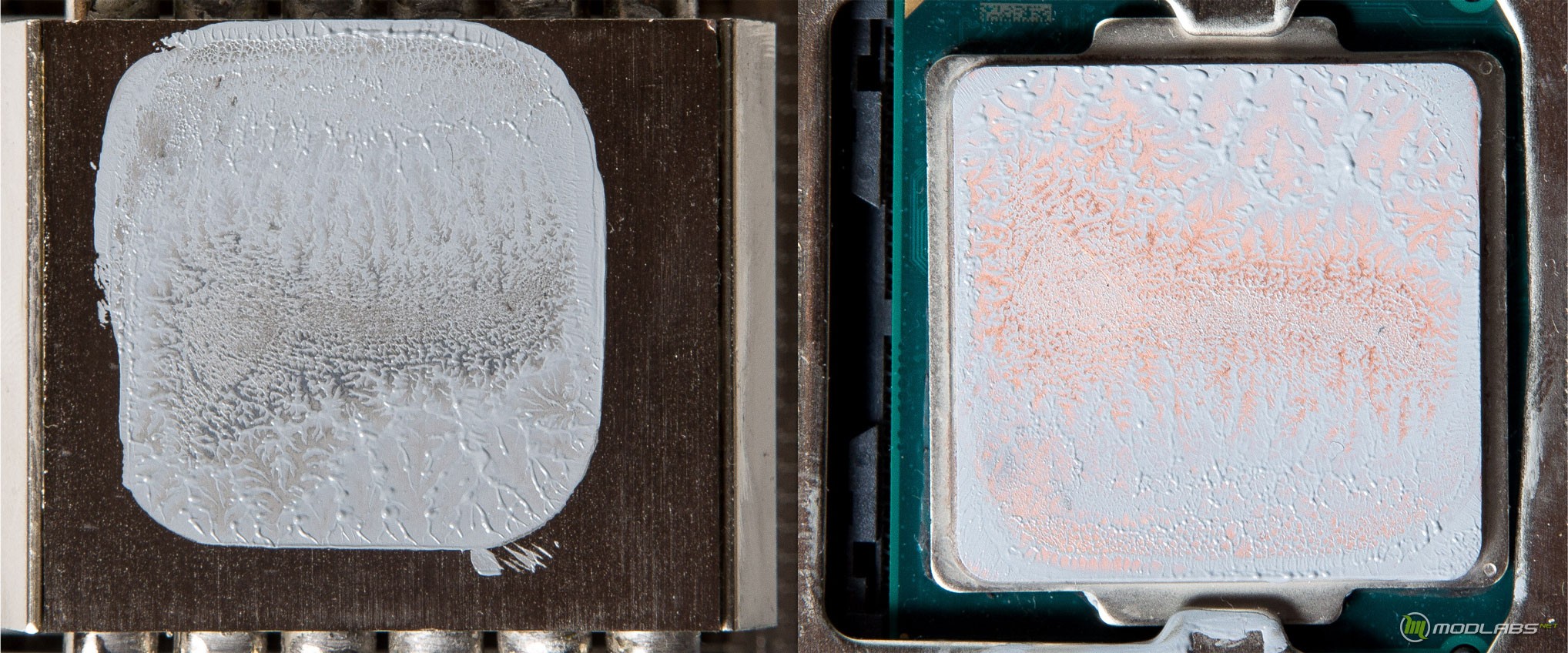 Горб подтверждает отпечаток процессора, а если приглядеться, то можно увидеть, что основание имеет даже волнообразный отпечаток. Но тем неимение прижим в зоне кристалла очень хороший.