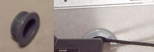 Вывод кабелей клавиатуры и мышки обрамлен ручкой того же цвета, но другого типоразмера: