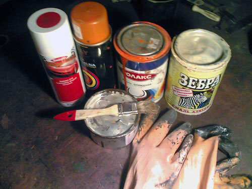 Итак, есть грязная белая поверхность и набор экономного моддера – остатки красок с предыдущих проектов и просто домашние запасы: