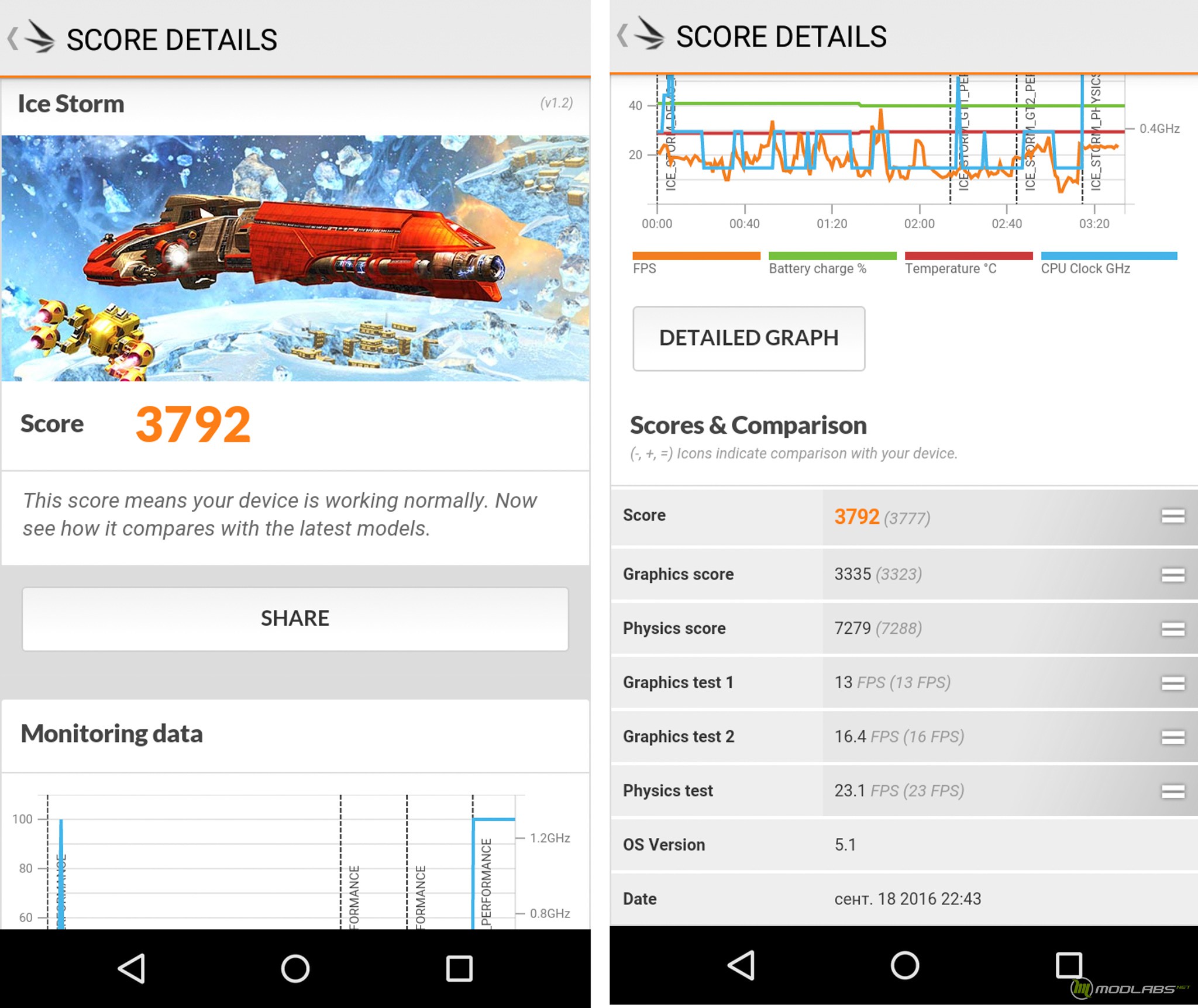 Начинка Micromax Canvas Juice 4 Q465 не самая привычная. Используется процессор Spreadtrum SC9832. В него заложены четыре ядра Cortex-A7 с частотой до 1,3 ГГц. За графику отвечает видеопроцессор Mali-400 MP. Доступный объем оперативной памяти составляет 2 ГБ, а внутреннее хранилище расположило в себе 16 ГБ. Интерфейсы: Wi-Fi 802.11 b/g/n, Bluetooth 4.0 и конечно же GPS, как начинка любого смартфона сейчас не обсуждаются :). Работали корректно, ошибок за время тестирования не обнаружилось.