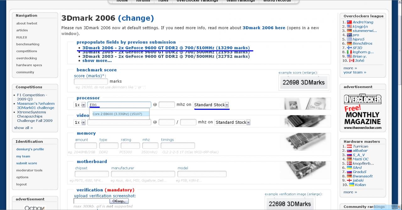 Что делать дальше зависит от того, насколько хорош наш результат. Если он претендует на попадание в двадцатку лучших результатов глобального рейтинга, то прикладываем к результату и скриншот (через кнопку "Обзор"), и подтверждающая ссылку (вставив её в поле "compare url"). Подтверждающая ссылка - это ссылка на результат, размещенный на сервере ORB (для 3DMark и PCMark), wPrime или CPU-Z. Если наш результат не так хорош, то можно предоставить что-то одно: или скриншот, или ссылку. Но лучше всегда стараться предоставлять и то, и другое. Но не забываем, что при подачи результата в CPU-Z всегда будет требоваться подтверждающая ссылка.