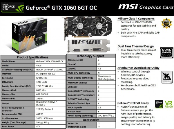 Теги: MSI, GeForce GTX 1060 6GT OC