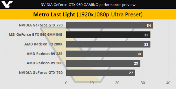 Как видно из графиков, разогнанный MSI GeForce GTX 960 близок по производительности к GeForce GTX 770, обходит AMD Radeon R9 285, но уступает или равен R9 285X.