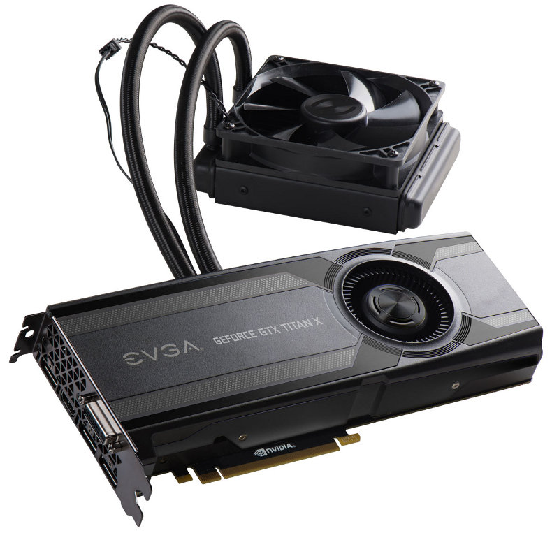Пока сообщество энтузиастов обсуждает состоявшийся анонс видеоадаптера NVIDIA GeForce GTX 980 Ti, некоторые производители уделили внимание модели GTX TITAN-X, обнародовав сведения о готовности новых модификаций. Так, например, компания EVGA официально представила мировой общественности версию акселератора EVGA GeForce GTX TITAN-X с гибридной системой охлаждения, которая внешне очень сильно похожа на ранее выпущенный EVGA GeForce GTX 980 Hybrid.