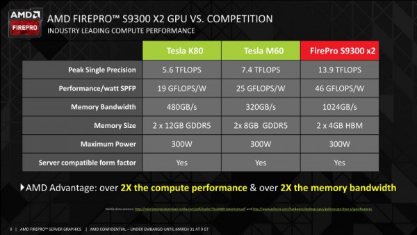 Если Radeon Pro Duo имеет рекомендованную стоимость в $1499, то ценник FirePro S9300 X2 значительно выше и составляет $5999.
