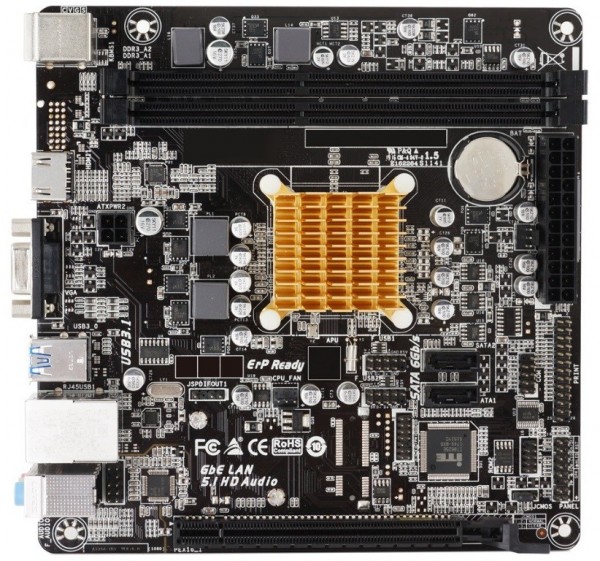 Новинка предложит своему владельцу встроенную в процессор графическую подсистему AMD Radeon R2 Graphics с частотой 350 МГц. Для охлаждения чипа предусмотрен скромный (судя по всему медный) радиатор игольчатого типа. Для повышения надежности материнки производитель предусмотрел исключительно твердотельные конденсаторы, имеющие увеличенный срок службы и повышенную прочность.