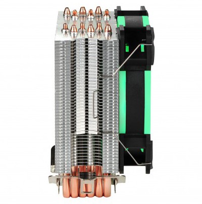 Теплосъемник по всей высоте пронизывают шесть 6-мм медных тепловых трубок U-образной формы. Для увеличения производительности кулера последние впрессованы в контактное основание и имеют прямое соприкосновение с крышкой процессора.