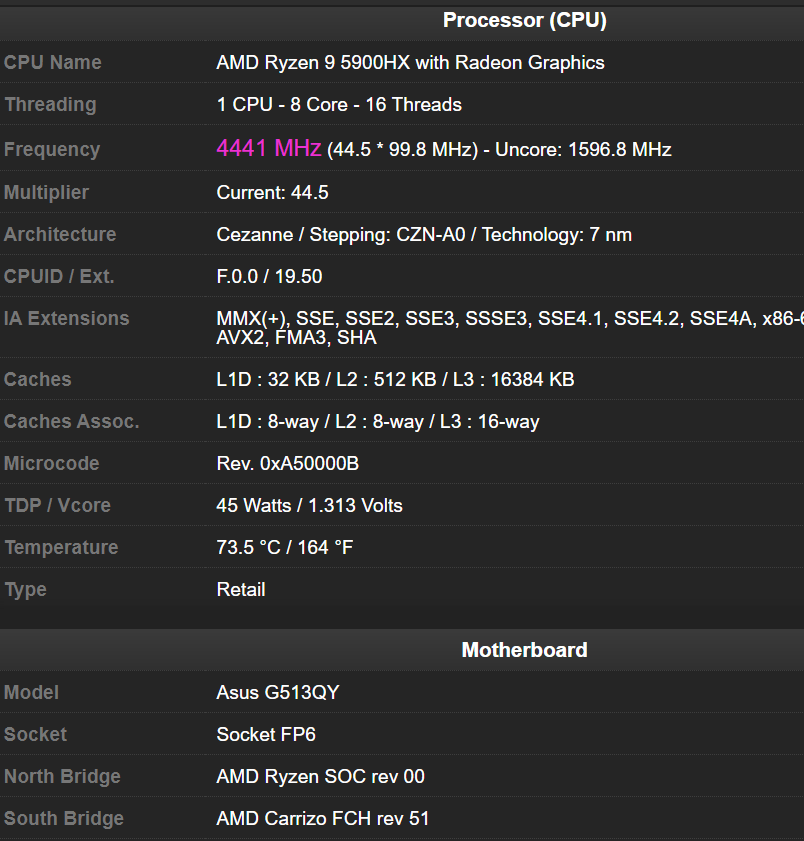Согласно свежему валидатору CPU-Z, компания ASUS готовит к запуску геймерский ноутбук ROG STRIX G15, оснащенный процессором Ryzen 9 5900HX и графическим процессором Radeon RX 6800M. Источник подтверждает, что данный ускоритель будет поставляться с 12 Гбайт видеопамяти. Отметим, что это первый случай, когда ASUS предложит ноутбук, оснащенный как высокопроизводительным мобильным процессором AMD, так и высокопроизводительным мобильным графическим адаптером AMD.