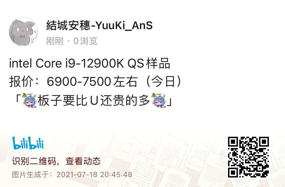 Как сообщает Yuuki_AnS, квалификационные образцы (Qualification Samples) процессора Intel Alder Lake-S теперь доступны на черном рынке Китая. Речь идет о чипах Core i9-12900K, что предлагаются желающим по цене от 6900 до 7500 юаней (от 1064 до 1157 долларов США).