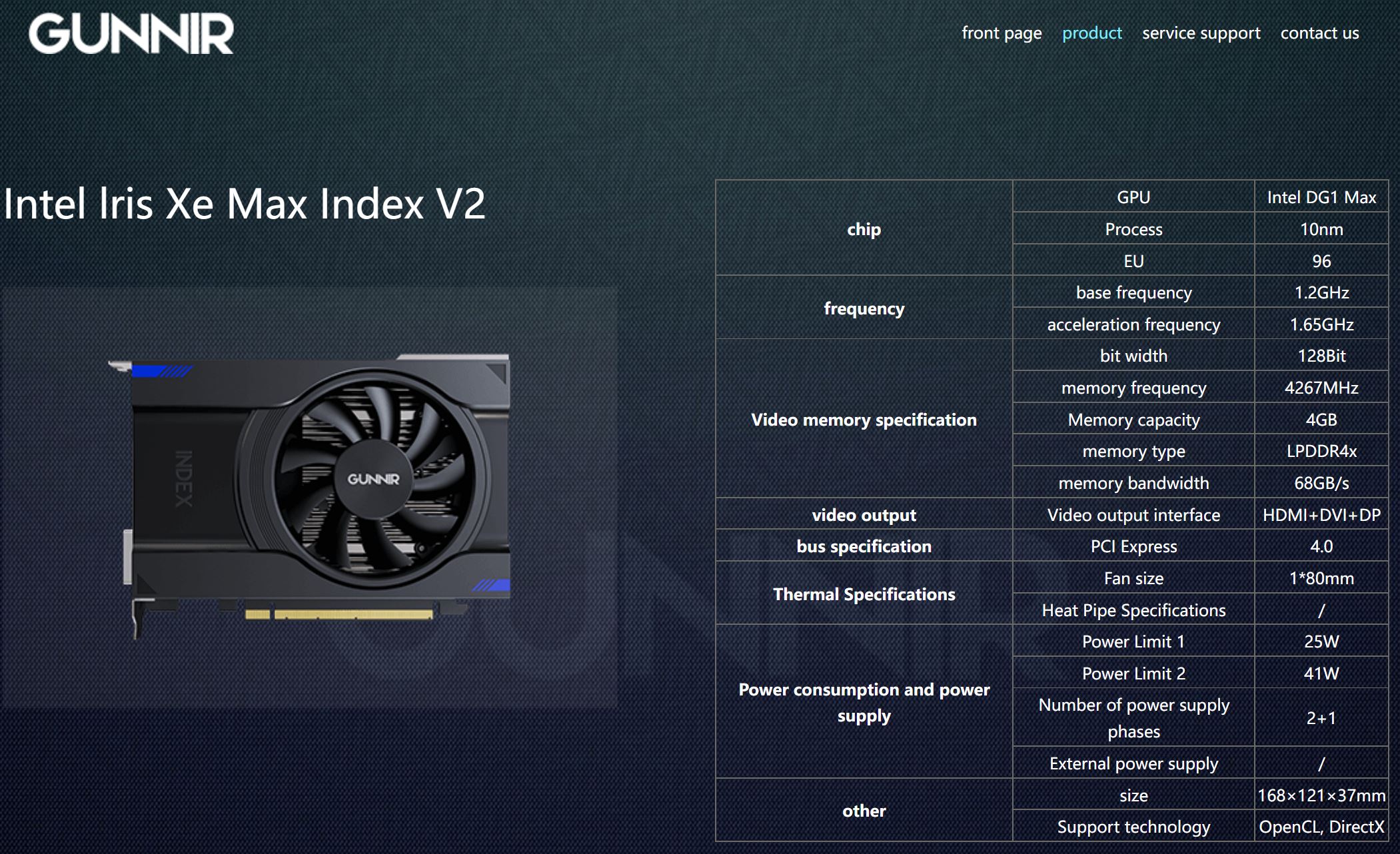 Китайская компания GUNNIR недавно обновила свой веб-сайт, добавив новую видеокарту под названием Iris Xe Index V2. Эта карта оснащена полноценным чипом DG1, который до сих пор был доступен только для ноутбуков.