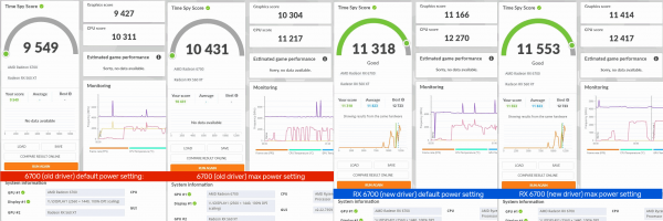 - RX 6700 (новый драйвер) мощность по умолчанию: 11166 баллов (+18%).