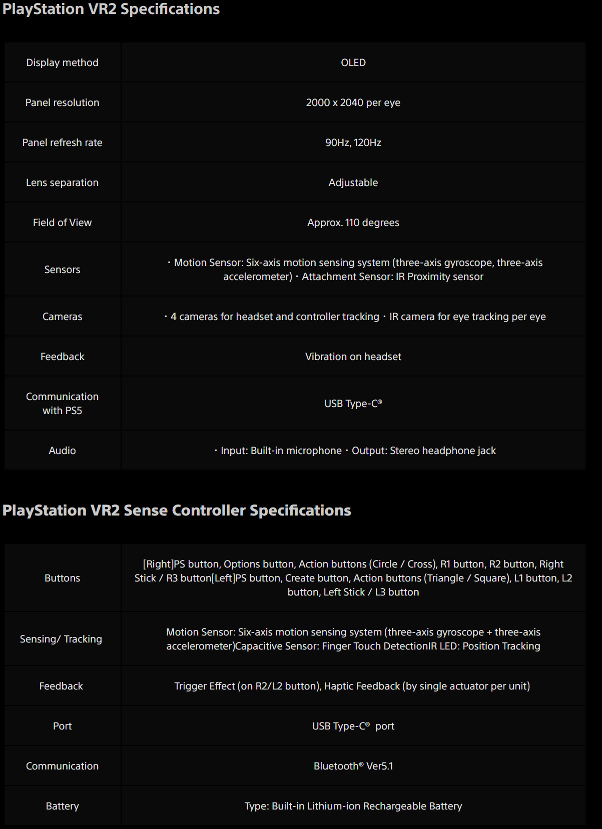 Характеристики Sony PlayStation VR2