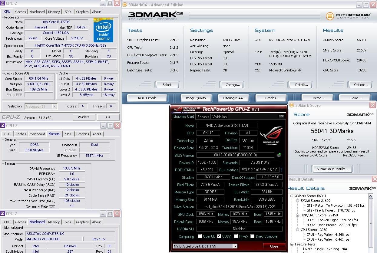 Графический ускоритель NVIDIA GeForce GTX TITAN продолжает удерживать пальму первенства в большинстве дисциплин международной оверклокерской базы Hwbot.org и сегодня российский энтузиаст, известный в среде любителей разгона под ником SLAMM, укрепил данное положение вещей. Согласно опубликованным данным, россиянин зарегистрировал новый мировой рекорд в категории 3DMark06 для компьютерных систем с одним видеоадаптером. Результат в 56041 балл превзошел предыдущее достижение почти на пять тысяч пунктов, и это стало возможным не только благодаря карте GTX TITAN в исполнении компании ASUS, но и свежеанонсированному процессору поколения Intel Haswell – Core i7-4770K.