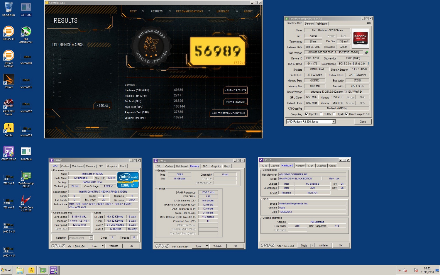 Графическая подсистема тестовой платформы была представлена видеоадаптером ASUS Radeon R9 290X DirectCU II в конфигурациях 2-way, 3-way и 4-way SLI, обеспечение оптимального температурного режима было возложено на испарители с жидким азотом.