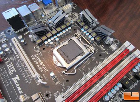 Материнка под названием Biostar TZ77XE4 построена на темной печатной плате, оборудована процессорным сокетом LGA1155, четырьмя слотами DIMM DDR3-2200 (OC), 12+1-фазной подсистемой питания, для обеспечения оптимального температурного режима важных элементов установлены алюминиевые радиаторы. Необходимо отметить наличие восьми портов SATA (4x SATA-II, 4х SATA-III), трех разъемов PCI Express x16, одного PCIe x1 и двух классических PCI.