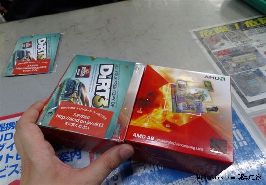 Мы уже писали о том, что процессоры A8-3850 и A6-3650 засветились в европейской рознице, теперь же в Сети появились сведения о поступлении на прилавки одного из японских магазинов боксовых версий данных чипов. Старшая из представленных моделей (кодовое название - AD3850WNZ43GX) обойдется покупателям в 13980 йен (~$170), в то время как младший чип (AD3650WNZ43GX) выставлен с ценником 11980 йен (~$150). Для того чтобы покупка стала еще более «вкусной» процессоры AMD Llano укомплектованы купоном на бесплатную загрузку раллийной гонки DiRT 3.