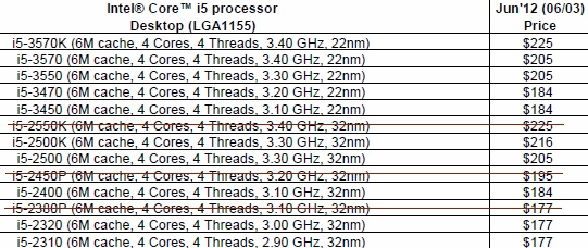 Уже сейчас наличие в прайс-листе Intel чипа Core i5-2550K не имеет никакого смысла, поскольку более свежая модель Core i5-3570 (3,4 ГГц) с подобными характеристиками предлагается на $20 дешевле, при этом на $9 дешевле стоит чип Core i5-2500K, который обеспечен встроенной графикой.