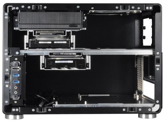 Lian Li PC-V353 поддерживает материнские платы micro ATX и mini-ITX, весит 4,1 кг, имеет габариты 288 (Ш) x 286 (В) x 397 (Д) мм и несет сбоку I/O-панель с разъемами USB 3.0 (x2), e-SATA (x1) и аудио (x2), а также 5,25-дюймовый отсек. Внутри кейса пользователь сможет свободно разместить два 2,5-дюймовых и два 3,5-дюймовых накопителя, а также графический ускоритель длиной до 300 мм. Стоимость данного шасси составляет $199.