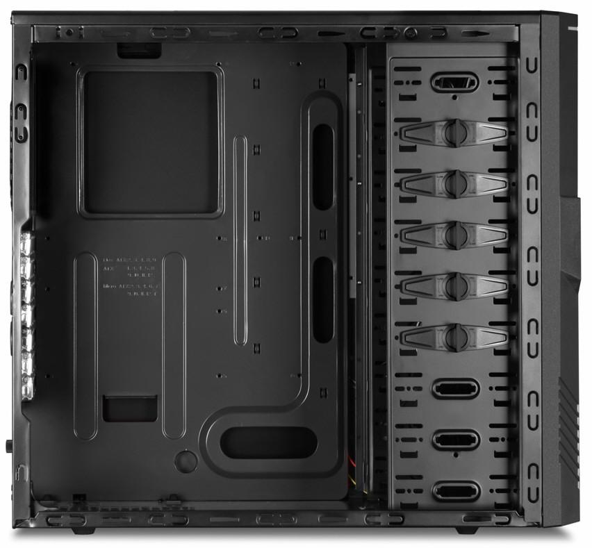 Модель T5 Economy содержит фронтальную I/O-панель (четыре USB 2.0 и аудиоразъемы), пять 5,25-дюймовых отсеков, столько же посадочных мест под 3,5-дюймовые накопители и передний 120-мм вентилятор с голубой LED-подсветкой; предусмотрено безвинтовое крепление комплектующих.