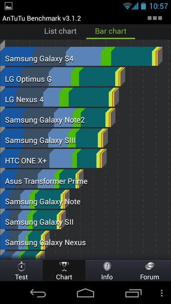Спецификации будущего флагманского смартфона Samsung Galaxy S IV являются одной из наиболее обсуждаемых тем последних недель, однако на днях в Сеть просочились результаты тестирования аппарата в популярном бенчмарке AnTuTu, благодаря которым мы можем с его характеристиками познакомиться. Итак, согласно опубликованным данным, новый представитель семейства Galaxy S будет основан на фирменном чипсете производителя Exynos 5 Octa 5410, с процессором (по четыре ядра Cortex-A15/Cortex-A7), который функционирует на тактовой частоте 1,8 ГГц, 2 Гбайт оперативной памяти и графической подсистемой PowerVR SGX 544MP. Отметим, ранее в качестве управляющей логики различные источники называли SoC-чип Exynos 5 Octa 5450.