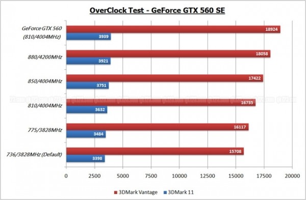 Один из китайских порталов уже успел провести несколько тестов Galaxy GeForce GTX 560 SE и представил снимок GPU-Z видеокарты. Для измерения производительности были выбраны бенчмарки 3DMark 11 (Performance), 3DMark Vantage (Performance), Unigine Heaven (режимы DX10 и DX11), а в качестве оппонентов выступали модели адаптеров GeForce GTX 560 и GeForce GTX 550 Ti.