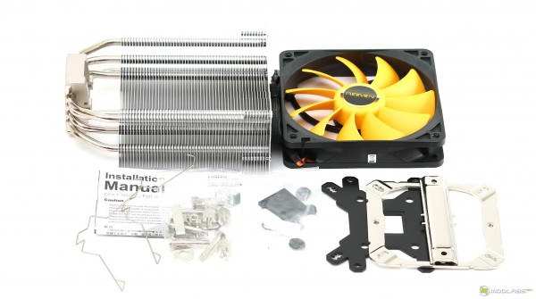 В комплекте поставки Hans RC-1205 обнаруживается набор креплений, один вентилятор, инструкция по установке, два набора скоб и небольшой пакетик с термопастой.