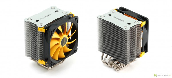 Башни рассеивающих ребер расположены друг от друга на обычном расстоянии, между ними как раз помещается 140’ка с шириной в 25 миллиметров. Каких-либо смещений относительно центра основания не наблюдается. Как мы знаем, сейчас многие производители используют данный подход, но в этом случае Reeven пошли стандартным путем.