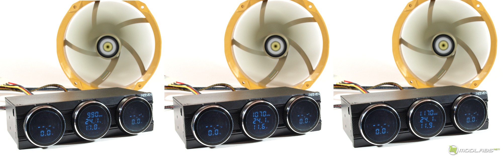 Панель-контроллер Reeven Polariz успешно продемонстрировала себя. Для вентилятора, скорость вращения которого заявлена 900-1300 об/мин без учета 10% погрешности с завода, удалось регулировать в диапазоне 240-1170 об/мин, сделав его в простое полностью бесшумным!